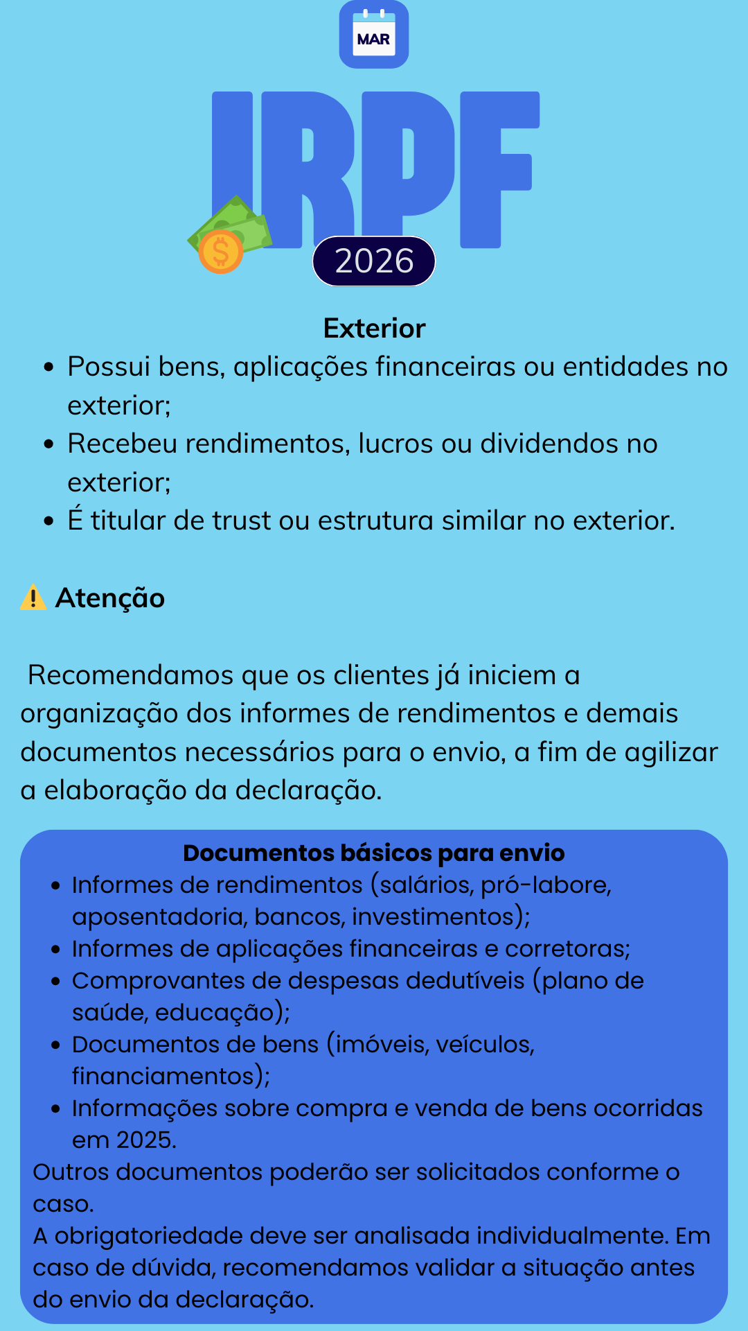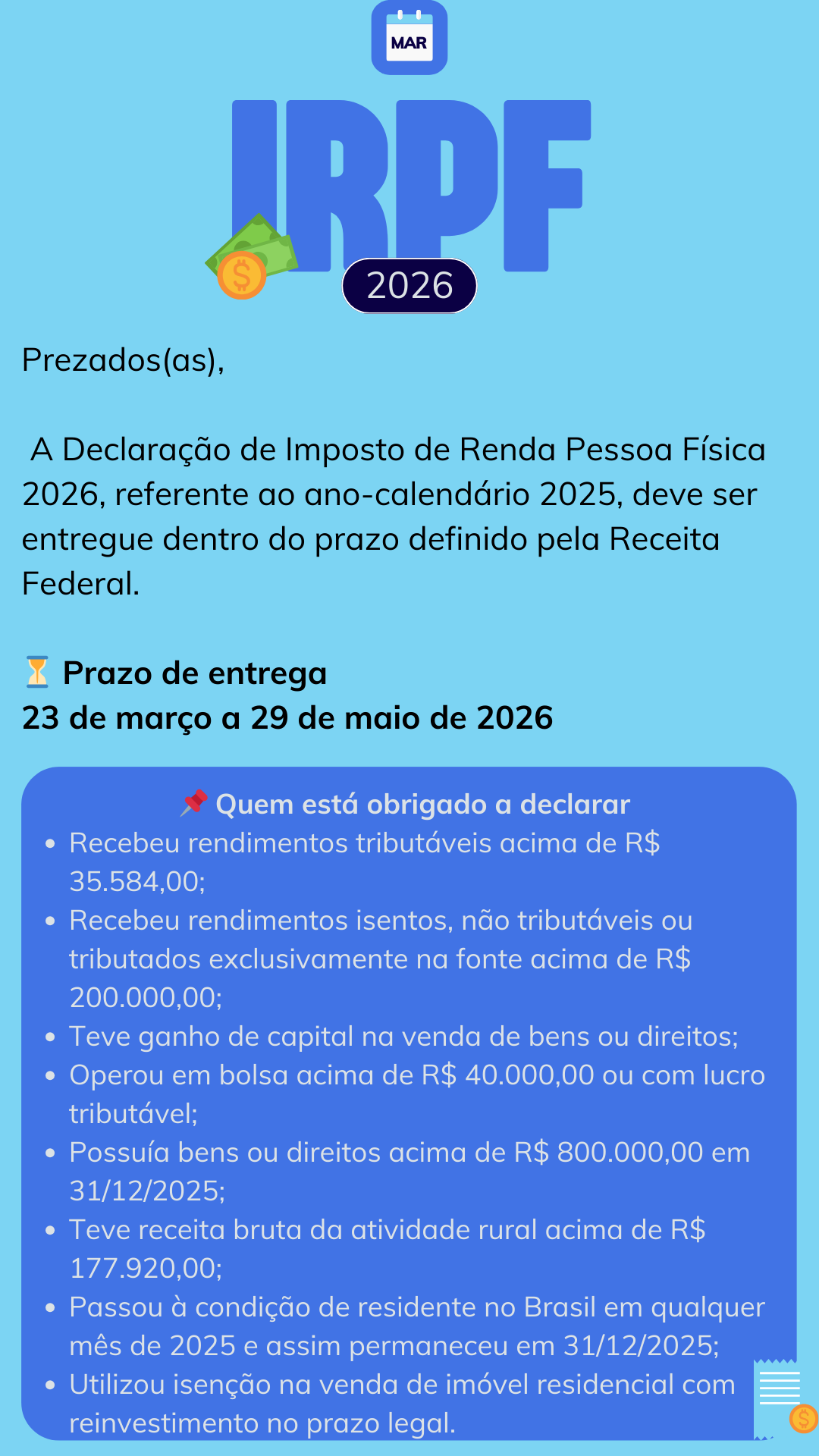 BOLETIM N° 06|2026 - IRPF 2026 - Prazo e Obrigatoriedade