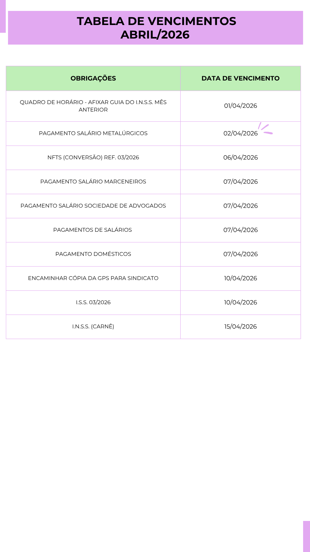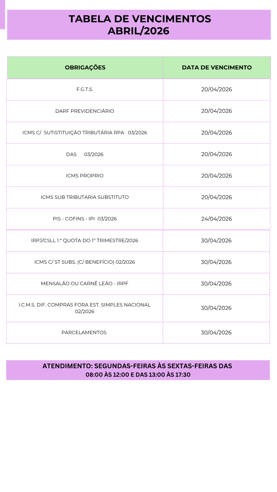 BOLETIM N° 08|2026 - TABELA DE VENCIMENTOS 04/2026