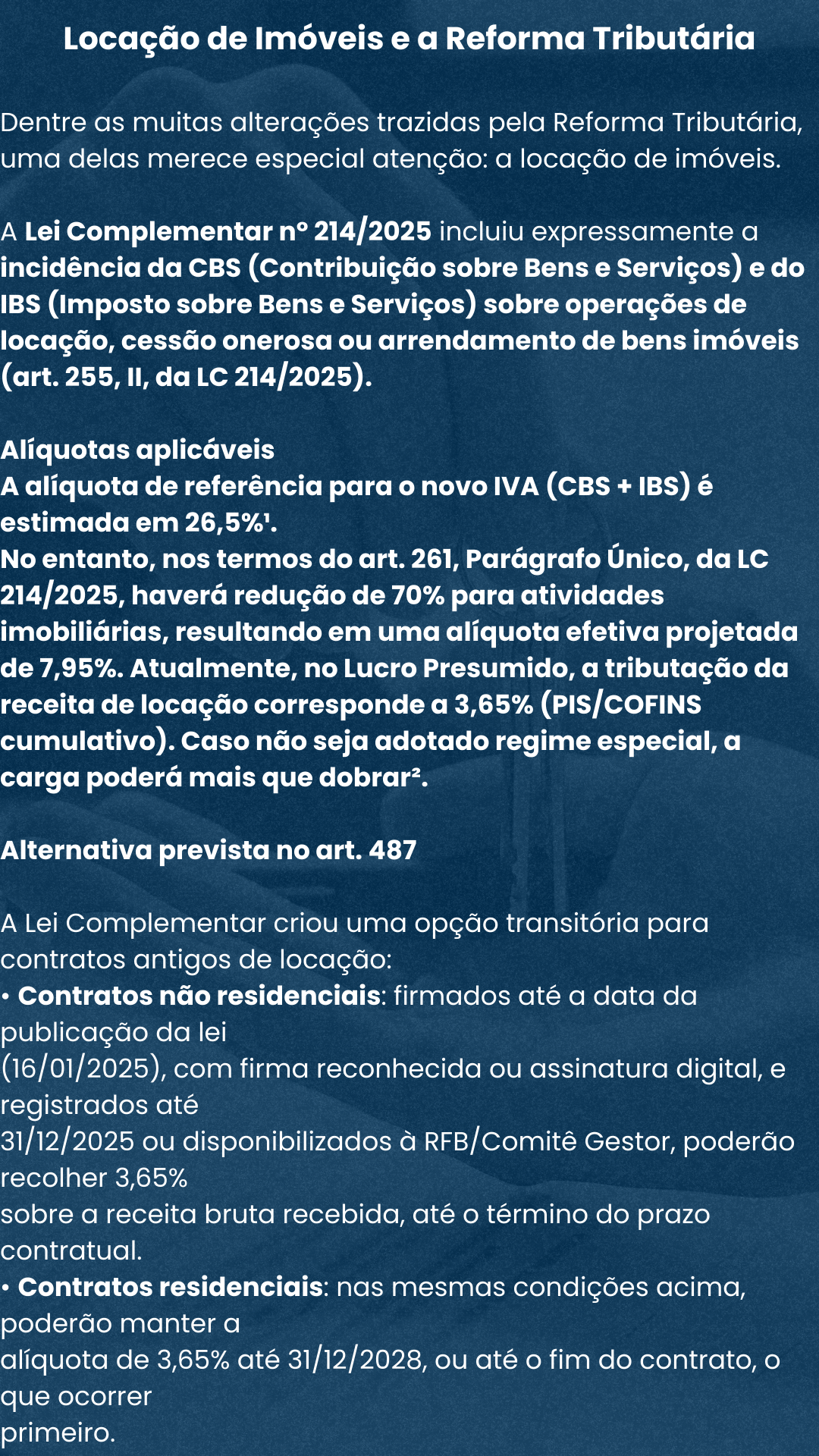 BOLETIM N° 27/2025 - Locação de Imóveis e a Reforma Tributária